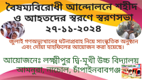 জুলাই গণঅভ্যুত্থানের ঘটনাপ্রবাহ নিয়ে সাংস্কৃতিক অনুষ্ঠান এবং দোয়া মাহফিলের আয়োজন করা হয়েছে।